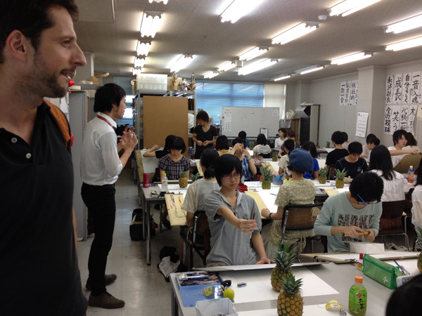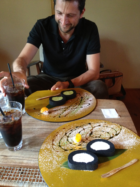 23 August 保田の夏休み 久美浜・フラッティーニさん さりゆく夏を惜しむ、なんて、気が早すぎますかね。まだまだ暑いですしね。盆過ぎてからより暑くなったような気もする。それでも、なにか、気配はします。夏がいってしまうような。夏期講習もあとわずか。大事にしたいものです。今回は、私大模試や京芸模試講評前ということで、軽い話題。保田の夏休みを紹介します。(嵐の前の静けさ)■お盆に久美浜に帰省お盆休みで実家の京丹後市久美浜町に帰りました。日本一美しいと勝手に思っている夕暮れの久美浜湾を紹介します。 サンセット・イン・久美浜湾※ トワイライト・イン・久美浜湾※ まるで水墨画でしょ※インかオンか何かわかりませんすいません。お盆当日に実家に帰るのは久しぶりでした。しっかり墓参りもしました。保田の他、なんと袖長先生も久美浜出身。さらに、アスクOB生紹介ページで紹介されている能勢五月葉さんもここ出身です。みんな近所どうし。(ちなみに、能勢さんの家は「あったり、なかったり」という不思議なキャッチコピーで有名なうどん屋。名店です。)水墨画のような風景の中で育った久美浜の美術系は、だいたい日本画に行くのですが、なぜか僕だけドロップアウトしてしまい洋画の方向に進みました。でも、久美浜湾の水面の光が瞳の奥に乱反射しており、自分の色彩を生み出しているのではないか、と最近思うことがあります。ブログでも執拗なまでに琵琶湖や宍道湖の写真をアップしているのも、ここからきています。 老猫のごんちゃん 帰り道の丹後半島 ※久美浜湾(内海=静)、日本海(外海=動)/コントラストの魅力■マヌエル・フラッティーニさんと京都寺めぐりドイツ人の友人フラッティーニさんが久しぶりに来日し、1日いっしょに過ごしました。フラッティーニさんは、ドイツ人のアーティストで、1999年1年ほど日本に滞在され、その時、確か精華大のドイツ人の先生からの紹介で、アスクで特別講師をしてもらいました。その後、再来日して京都で個展をされ、その後、大阪で保田と二人展もしています。5年ほど前に来られた時は、アスクST生といっしょに国立博物館の「曾我蕭白展」に行ったり、ドイツ美術や自身の作品に関するスライドレクチャーをしてもらったりしたのですが、今回は滞在期間が短く、また夏期講習期間だったので、そのようなことは無理でした。ただ、ちょっとだけ七条校は見学してもらいました。 フラッティーニさんは、その後、日本人女性と結婚され、息子さんもいます。今回、奥さんのご実家の松山市に家族で滞在された後、京都、丹波、東京、鎌倉などをまわって、一人だけ先にドイツに帰られました、が、1日だけ保田と京都で過ごしました。トータル2年ほど京都にいた人なので、たいていのお寺などは知っている訳ですからどこに行くか迷いましたね。結局、七条校を出た後、東山の六道珍皇寺、六波羅蜜寺、建仁寺~洛中の六角堂~嵯峨野の清涼寺(嵯峨釈迦堂)、大覚寺(は閉まってしまったが)の大沢の池~広沢の池、最後は、船岡温泉でひと風呂浴びて紫野のわが家に戻りました。 建仁寺では、「デジタル復元」と大々的に書かれてて、フラッティーニさんもややがっかりしてたが、おかげで撮影がフリーなので、ここに掲載できる訳です。俵屋宗達、海北友松などお宝満載のお寺です。伽藍は大きく、庭も広くて気持ちいいです。夏に向いている寺だと思う。海北友松は桃山時代の画家の中でもトップレベルだと思います。六道珍皇寺は庭を特別公開しているはずだったが、中休み期間で入れず。六波羅蜜寺は空也上人像が有名だが、なんといっても清盛像がお勧めです。 京都といえば「食」そして「スイーツ」。フラッティーニさんも大喜び。 嵐電嵐山駅から北へ、清涼寺では「三国伝来の釈迦像」を見ることが出来ました。普段はカーテンの奥にしまわれており、毎月8日と春秋の特別公開期間以外は見れないはずのものなのですが、たまたま、特別な行事があったとのことでご開帳されていました。ラッキー。さらに北に移動し、大覚寺の大沢の池をまわりました。※大覚寺は嵯峨芸大をつくったお寺なんですよ。なので場所も近いです。 大沢の池は、蓮が生えており、この世のものとは思えないほど美しかった。大げさですね。ただ、こんなところが、街中からすぐ行ける所だったりするのが京都のよいところだと思います。 そのまま広沢の池まで歩く。平安時代から「野は嵯峨野」だった訳ですが、ほんとに嵯峨野はいい。北嵯峨高校生がうらやましい。ザリガニ取りの子供たちがいた。なつかしいな。かなり取れてた。いいタイミングで夕日が落ちてきました。ただ、けっこう暑かったですね。いい汗をかいた後は、船岡温泉。フラッティーニさんは、船岡山近くに住んでいたこともあり、当時から船岡温泉の常連客でした。僕も現在近くに住んでるので時々行きますが、最高ですよ。受験生にもお勧めします。していい