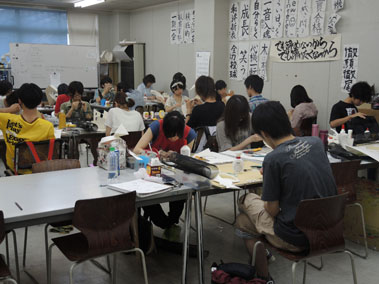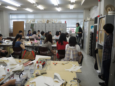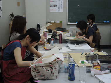 30 August 夏期講習 最終日 こんにちは。マシヤマです。少し涼しくなって 「あぁ、夏も終わったなぁ。今年の暑さにはさすがに参ったけど、今となっては懐かしい」などと思っていたら、昨日今日と暑いこと! 完全にだまされました。台風も近づいています。子供の頃は台風が来るとなぜかワクワクしました。風が急に強くなったり、雨の匂いがしたり。一番好きだったのは『下の方(遠方)だけが明るくて、上の方(頭上近く)が真っ黒』そんな空を目にすることでした。「いつもと違う世界みたい。なんかカッコいい」と思ったものです。 明日から後期授業が始まります。(高卒生は9/9から)折角の新学期が台風と重なりそうで心配。暴風警報が出た場合の対応がアスクHP内で確認できますので、チェックしてください。http://www.artschool.co.jp/tugaku/picup.html【HPトップ⇒通学生へ⇒お知らせ】の流れでも確認できます。本日は七条で指導に入りました。夏期の間はほとんど北山にいた私にとって、七条生の制作は新鮮です。 京芸クラスの締めくくりは立体課題です。のりしろの作り方や手順(手を入れて作業する空間を残す)など、やや効率の悪い人もちらほら。「形を考えるだけでは不足。もっと時間を意識して、途中の進め方にも気を配るように!」と後期も言い続けるつもりです。そして、8/30といえば【上杉先生の誕生日】なのです。七条生が盛大に祝ってくれました。 何歳になられるのか把握してなかった生徒たち(笑)いつまでも若いので永遠に26歳でイイと思います!<やっぱり台風にワクワクする マシヤマ> [0回]PR 2013/08/30 (Fri) 15:10 アスクでのこと Comment(2)