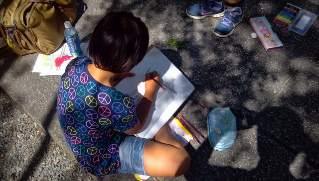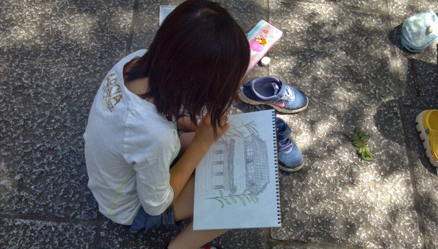 少し涼しくなったとはいえまだまだ暑い中、生徒たちは集中してスケッチをしていました。