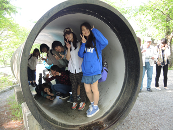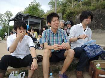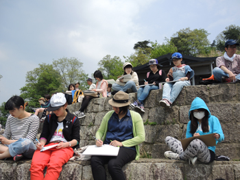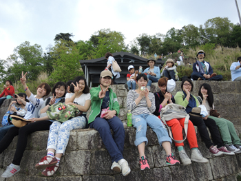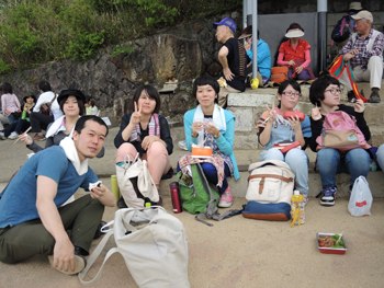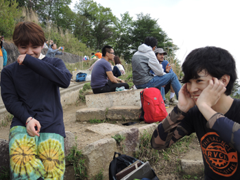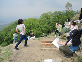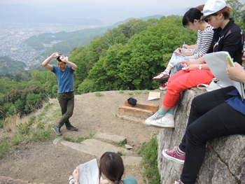 04 May 大文字登山に行ってきました こんにちは、再びコジマです。昨日SP・ST生、OG生と「大文字山登山そして京都散策」に行ってきました。天気もよく、絶好の登山日和でした。久しぶりに会う仲間もいるようで、集合からにぎやか。なかなかきつい登山コースでしたが、おしゃべりしながら、休憩しながら進みました。 (おそらく)5合目の休憩地点。みんなばてています。そんな中、先生はいい棒を見つけたようです。 頂上では京都市内が見下ろしながらみんなでお弁当を食べました。山の上でおにぎりを食べるのが夢だったのですが、簡単に実現しました。素晴らしい時間でした。みんなにお弁当を作ってきてくださった方もいて、とてもおいしかったです。 男子グループにも混ざりに行ったらびっくり。あごが外れた子が!冷静にスマホであごのはめ方を調べ、無事はまったみたいです。いい笑顔の本人と、冷静な彼ら、みんな大物になりそうです。 そのあとは美術予備校らしく、クロッキーをしました。ポージングの才能が溢れています。 山満喫しました。やっほー その後、南禅寺~水路閣~インクライン廃線跡~ギャラリーめぐりへ。 さて、一夜あけて今日はマーク模試の日です。楽しむところは楽しんで、集中するところはしっかりする。そんなみんなの様子がいいなーと思いました。コジマ [0回]PR 2014/05/04 (Sun) 15:18 アスクイベント Comment(1)