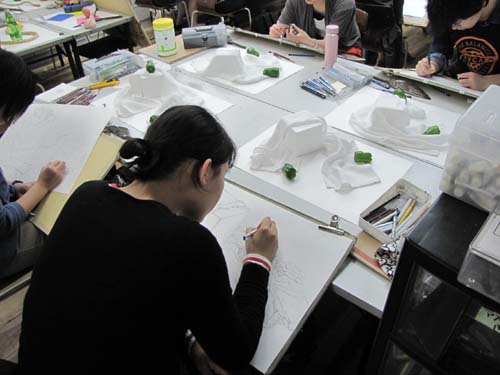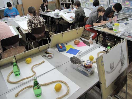 13 May 見る描く見る こんにちは、北大路校の片岡です。現在ST生は北大路校七条校共に稜線デッサンを制作中だと思います。非常に特殊な課題なので戸惑いもあるかもしれませんが、この様な課題は1回しかやらないので有意義に使って欲しいと思います。私はいつもデッサンはものの見方であるという考えで話しています。鉛筆の技術よりも、ものを見る力が問われているのです。もちろん鉛筆の技術も大切ですが、まずはモチーフをどう見るかから始まるべきです。また見方は1つではないし、どれが正解ということでもないのです。ものを立体的、空間的に見るにはどこに着目すべきなのか、そこのところに意識を集中してみてください。きっと見えなかった形が見えてくる、その先にはあなたのものの見方があるはずです。 本日の北大路校片岡 [0回]PR 2014/05/13 (Tue) 19:24 アスクでのこと Comment(0)
