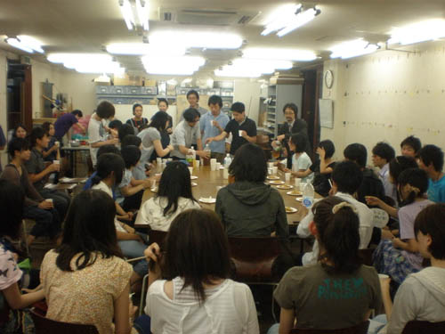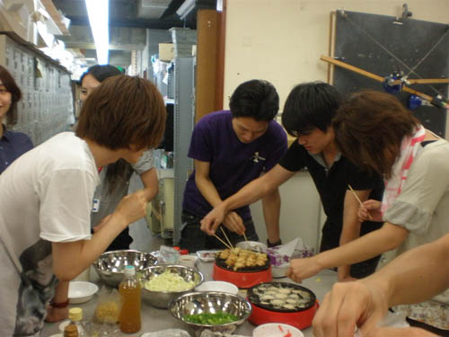 05 August 恒例!持ち寄りやきそば大会!! 先日、北山教室にて毎年恒例『持ち寄りやきそば大会』をしました♪持ち寄りなので、各々好きな材料を持ってきて調理しました。授業が終わったあと、皆で準備をしました。女性陣は野菜切りを、男性陣はやきそばのセッティングをしていました。S先生は、生徒が持ってきたいんげん豆を見てテンションが上がり気味です。準備が始まりました。アスク特注の巨大鉄板でやきそばを作って、何が入っているか食べてみてからじゃないと分からないたこ焼を作って、ミニライブに向けて歌の練習をして・・・。七条教室の生徒が集まってから、いざ『乾杯!!』大教室が人でいっぱいです。。夏の暑さには負けませんが、たこ焼きの熱さには勝てません。。なかなか皆で集まってご飯を作って食べる機会が少ないので、貴重な一日となりました。また、夏期講習の第5期間目ともあり、いい息抜きができたのではないかと思います。残りわずかな夏期講習、皆と共に頑張っていきましょう!<ウエダ> [0回]PR 2010/08/05 (Thu) 19:46 アスクイベント Trackback() Comment(0)