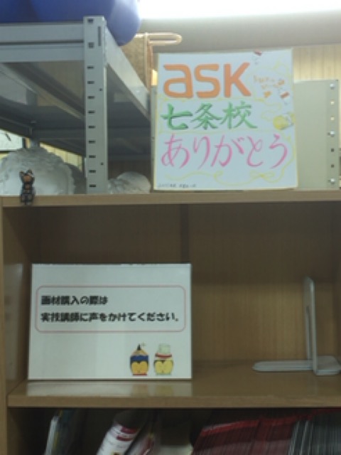 21 January 直前講習 3日目! こんばんは。昨日はついに雪が降りましたね。ようやく京都も冬らしい気温になったなと感じました。センター試験ともうまくずれてくれたので良かったです。さて、本日の七条校の様子です。京芸クラスは色彩課題でした。 講評では良い作品が並びましたが、あともう一押し、という人も多かったです。そして、七条校2Fも様変わりしました。生徒の皆さんも直前講習が始まりましたが、やるべきことが大きく変わるわけではありません。それぞれの入試まで不安でいっぱいだと思いますが、あともう少し、がんばり時です。メモを見返してみるのも良いでしょう。残りの期間一緒にがんばりましょう!和田 [0回]PR 2016/01/21 (Thu) 21:17 アスクでのこと Comment(0)