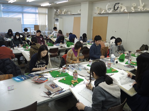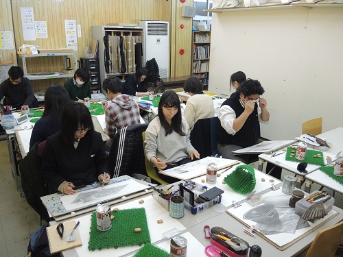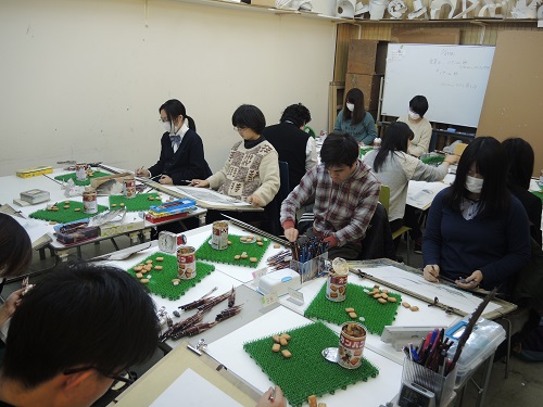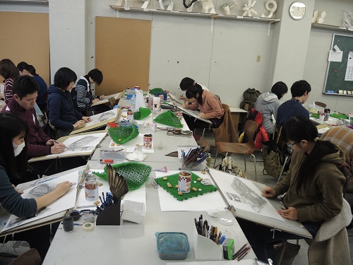 25 January 根性モチーフ こんにちは片岡です。本日の七条校京芸クラスはあの有名モチーフ「人工芝」でした。これは2007年度の京都芸大で実際に出題されたモチーフですがなかなか考えさせられるモチーフです。まず誰しも思うのが「これどうやって描くの!?」だと思います。もちろんこのどうやっての後には「4時間で」という言葉が略されています。要するにあまりにも細かくて更にパターン化されている工業製品であることから(人工物としての)形の正確性が求められていることと、絶妙に描かなければいけない(描くことができる)細かさなのです。ただしこういった一見難しそうなモチーフは全ての受験生にとって同じように見えている可能性が高いといえます。このような俗に言う根性モチーフは文字通り根性を見せてやればいいのです。そのためには絶対的な条件として確実に完成していることが大きなポイントになるでしょう。①まずはどのように配置するかを良く考えましょう。②パースは慎重に合わせましょう。これがあっていないとどんなに描きこんでも良く見えません。③構造をよく観察しましょう。人工芝の1つ1つのディティールを見て描くことは難しいと思いますが、構造を理解していれば見ることが出来るでしょう。④形を(出来るだけ)正確に取りましょう。これがあっていないとどんなに描きこんでも良く見えません。⑤自分を信じてやりきりましょう。完成度に最も影響を及ぼす部分です。 片岡 [0回]PR 2016/01/25 (Mon) 18:05 アスクでのこと Comment(0)