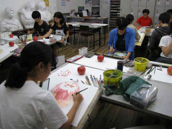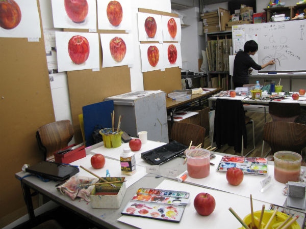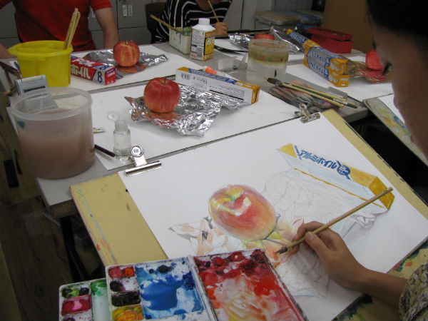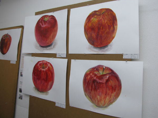 31 August 無題 こんにちは!北大路校から近藤です。今日は8月の最終日です。夏の終わりを感じ始めると少し切なくなりますね。私は祇園祭を見たいと思って、五山送り火の大という字を見たいと思って、夏らしい事をしたいと思った夏でした。…あぁ。最近はとても空が綺麗……さてさて!!!今日の北大路校ではりんごの細密描写をしました。りんごは、みんなを潔く裏切ってくれる素敵なモチーフだと思います。丸いと思ってたら、全然丸くない。ヘタがあると思ったら、それは全然中心を通っていなかったり、つやっとした光沢によるハイライトがあるかと思えば、部分は果粉(ブルーム)があって無光沢だったり。また、赤いと思ってたら全然赤くない。赤橙黄の同系色では、とてもあの立体感のあるりんごを表す事は出来ないです。気を付けながらも緑青紫など補色を使ってくださいね。最近の北大路校の様子 [0回]PR 2016/08/31 (Wed) 18:59 アスクでのこと Comment(0)