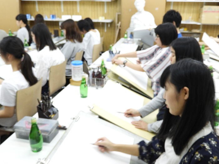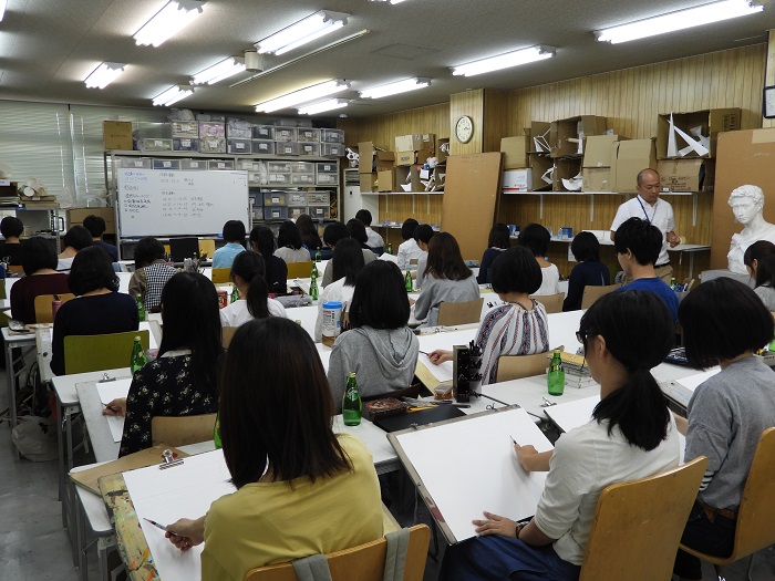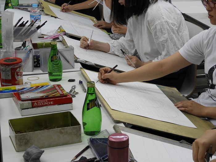 18 September 七条校 造形トレーニング こんにちは。七条校から川道です。昨日は台風の影響で授業が休講となりました。この授業については、通常授業の振替と同じように、各自希望する日に振替を行ってください。振替日をいつにするのか、事前の連絡をお願いします。さて、本日の七条校STSPクラスの授業では、造形トレーニングを行いました。制作では、観察したことを紙の上で手を動かして描いていくわけですが、その「手を動かすこと」に着目した内容です。制作が思うようにいかないとき、もしかしたら自分の考えた通りに身体を動かすことができていないのかもしれません。授業では、自分の身体の運動の精度を確認しました。 腕を水平や垂直に伸ばすだけの運動ですが、傾いたり左右の角度が違ったり、思うように動かせない生徒も多かったです。腕は自分から見えない位置にありますので、視覚から外れると、運動の精度は下がってしまうようですね。描写の運動も行いました。水平や垂直の直線や円を描きます。 こちらもなかなか思う線が描けません。見えていても、精度の高い運動ができていない場合もあります。こういったことは、一朝一夕で身につくものではないと思うので、考えるとおりに線を引けるよう、筆を動かせるように、少しずつ訓練を続けていきましょう。 [0回]PR 2017/09/18 (Mon) 16:17 アスクでのこと Comment(2)