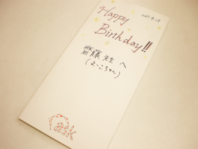 16 April 誕生日でした! ありがとう!! 今日はたくさんの「おめでとう」をもらえて、幸せでした! 生まれてよかった…… サイトウ26歳です。 去年の生徒のみんなから+今年の生徒のみんな(?)+職員の皆様から↓ ほんとにひとつひとつのメッセージがうれしい。。。 ときどき、名前書き忘れてる子がいて「だれやねん…笑」と笑けます。 受付のおねえさんYさまから、いただきました↓ 初めてお目にかかったプロダクト…なるほど! これはたまらん! メモを挟んでくれるペンギン。背中がマグネット。 白黒で切なさを出してみた… つづいて、『カップMEN!!』 受付のお嬢さんUさまから↓ ペンギン友情出演… カップ麺のお湯をまつときに、フタを閉めてくれるやさしいMEN。 そして上司Sさまから↓ 奥にある事務所はこんなんなんだよ… 2本目の指し棒。北山教室での講評でつかいます! うれしいうれしい 最後に、『しお はちみ』さんから↓ ありがとう! 速攻食べます。 本当にありがとうございました! 幸せ! 大学始まったみんなも新生活楽しんでね。 昨日はASA○Aくんがふらりと教室来室。髪切ってさわやかになってました。 ふらりと寄りたくなってくれることがうれしいね。 (もちろん、授業があるのでなかなか話をできないことはあるのはご了承ください) 今年のアスク生のみんな、一緒に一年がんばろう! <サイトウ> [0回]PR 2011/04/16 (Sat) 00:24 非日常な出来事 Trackback() Comment(4)