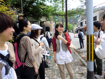 06 May 大文字登山2011 5月4日(水)晴れ。黄砂あり。 アスク恒例行事、大文字登山に出かけました。 京都市民の最も身近な山、如意ヶ岳、通称「大文字山」です。 毎年8月16日に行われる「送り火(お盆に帰ってきた先祖や故人の精霊を祀り日で送る)」で有名です。 今年は高卒生、高3生、高2生、OB生と先生方で総勢39名の参加者。 GWということで観光客も例年に増してにぎやかでした。 -集合場所にて- -銀閣時の横に登山口があります- -途中の林で休憩- -山頂!!(まで約1時間…)- 何度来てもこの大パノラマには感動します。 -お弁当time- -集合写真- 膝が笑う下山後、アイスやきゅうりを食べて、後半編はY先生プレゼンツ京都散策です。哲学の道~南禅寺~水路閣~蹴上のインクラインへお散歩です。 新緑がきれいでちょうど気持ちいい気候でした。 参加したみなさん、どうでしたか? 感想お待ちしてます。 他府県のみなさん、京都へお越しの際は是非大文字登山、オススメです。 吉井 [0回]PR 2011/05/06 (Fri) 14:11 アスクイベント Trackback() Comment(4)