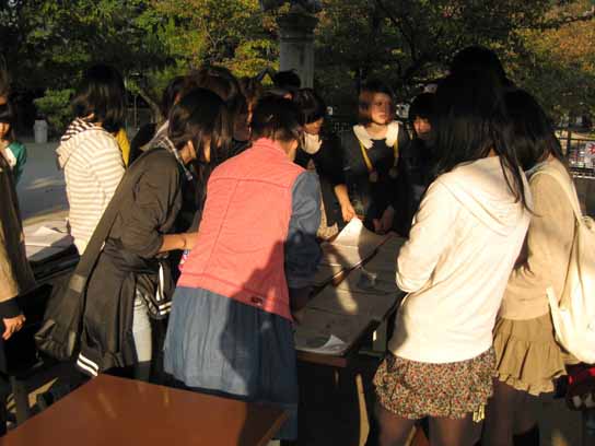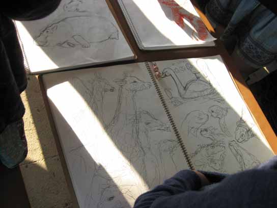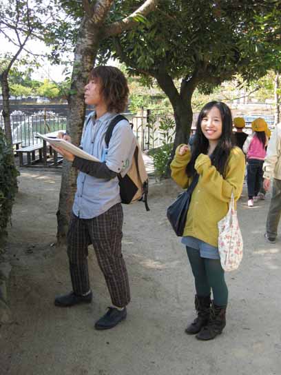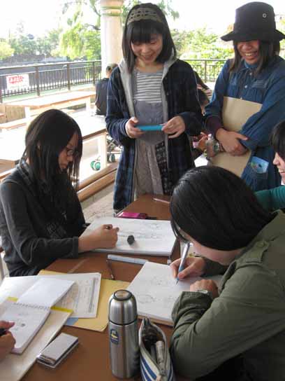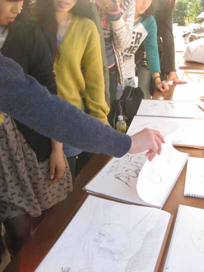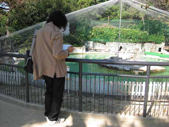 20 October 京都市動物園へ 本日のSTSP生は『動物園での課外実習』をおこないました。動物の中では、馬と犬が特に好きなマシヤマです。木曜からの課題のための下準備でもあり、束の間の息抜きでもあるこの動物園実習。そんな一日の様子をご紹介します。各自、自由行動にて動物クロッキー、スケッチの開始。いつも思うことですが、「生で見る動物って、やっぱり想像と違う!」その大きさ、小ささ、肉感、臭い、動き、触感(←これは触れるもの限定)。目の前を行き来するキリンを見て「よくぞこんな生き物がいるものだ!」と、その精巧さにあらためて感動しました。だってどうなってるの?あの高さ!あの脚の細さ!首の上げ下げのシステム!それに、知っているはずのキリンよりも実物は毎回大きく感じるんだもの。自然の作り出す独創性にはかなわない、と感服するのです。お昼を利用して午前中に皆が描いたクロッキー、スケッチを覗いたりも……。 S先生はまわりに沢山いた子供をモデルにスケッチ中。『天竺ネズミ』と触れあえるコーナーでは、そのカワイイ姿にみんな悶絶☆ 天竺ネズミって『モルモット』のことだって皆知ってた? 私、知らなかった。最後に全員の『本日の渾身の1枚』を見せ合いました。みんなの作品、とってもとっても素敵でした。“上手く描こう”なんて考えなくていい。それよりも目の前の動物たちと向き合い、素直な目と心で手を動かしてほしい。精神的に追い込まれる受験シーズン。時折、今日の気持ちを思い出してね。<マシヤマ>(おまけ)昨年まであった『ヒトの檻』が見つけられませんでした。無くなっちゃったのかな?「見た!」という人は教えてください。それに関連して……ニューヨークのブロンクス動物園の「GREAT APES」(類人猿舎)エリアには「鏡の間」という檻があります。そこでは、それを覗く人間の上半身が映る鉄格子のはまった鏡があり、その鏡の上に次のように記載されているそうです。「The Most Dangerous Animal in The World」(世界で最も危険な動物 )考えさせられます。 [0回]PR 2011/10/20 (Thu) 02:23 アスクでのこと Trackback() Comment(0)