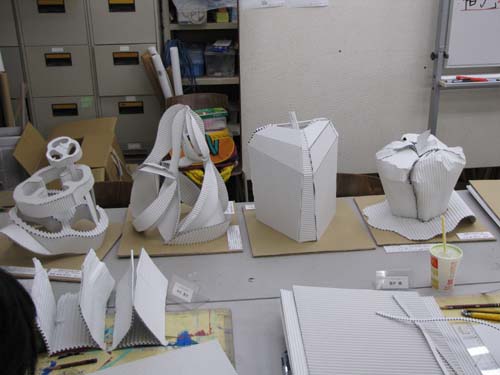 04 April 北山校の様子 春期講習も残すところ明日の一日となりました。本日、北山校では今年度の京芸入試で出題された立体構成と同じ課題を制作しています。段ボール素材で作る帽子ですね。明日講評ですが、皆さん出来はどうでしょうか。完成しそうにない人は、こうして授業後のオープンアトリエで粘って制作しています。そして小教室では同時並行で卓上デッサン講座も行われていました。じゃがいもとストライプの布がモチーフです。こちらも明日の一番が講評なので、こうして授業後も制作に余念がありません。立体を作るにせよ、デッサンを描くにせよ、「はじめてなんですぅ……ガタガタガタ」なんて怯えている人が何人かいましたが、恐るるにたらずです。練習すれば上手くなります。当たり前のことを言いますが、誰だってみんな最初ははじめてです。考えてみれば、人生なんてはじめてだらけであって、はじめて生まれて、はじめてオギャーと泣いて、はじめて立って、はじめてしゃべって……って、そういうのの延長ですから、立体だって、デッサンだって。皆さん今じゃ、けっこう上手にしゃべれますでしょ。立てますでしょ。そういうもんではないでしょうか。ないかもしれませんが、そう思ってみるのはどうでしょうか。はやし [0回]PR 2013/04/04 (Thu) 20:28 アスクでのこと Comment(0)