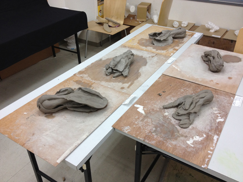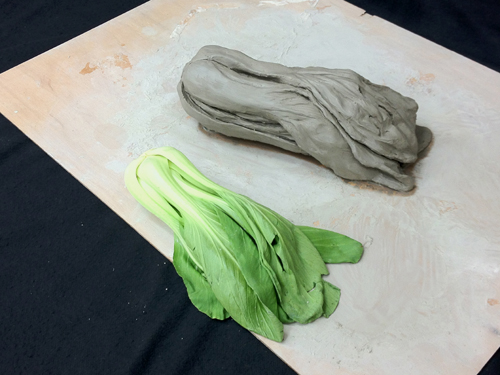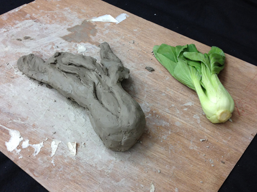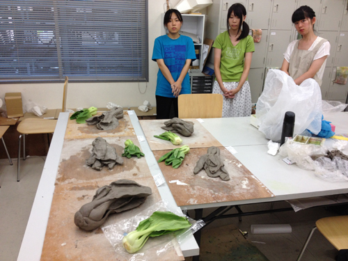 10 August 第一回 立体DAY in 草津教室 本日、草津教室は 立体DAY でした。 なんと全員が立体構成でした。たぶん、はじめてのことです。(立体じゃない生徒が休んだから、ということもありますが…)京芸受験クラスは粘土でチンゲンサイを制作、基礎クラスは割り箸100本による構成では、簡単に結果を報告します。京芸の方は、写実表現が求められた課題なので モチーフと見比べながら講評を行いました。 左)Yさん。形の大きな流れが捉えられています。その結果 チンゲンサイ独特の形の魅力が表現できています。(実は最初のが悪過ぎ、モチーフ買い直しを命じた)が、細部の描写が…全然足りません。スピードアップしないと。 右)K君。葉の部分の起伏をしっかり観察描写できており 葉の厚み(薄さ)が伝わってきます。今回、最も良かった作品。 ただ、全体のシルエットはやや単純化してしまってるようです。 左)Fさん。これも、しっかり造形出来た作品ですが…やはり細部の描写がまだ甘い。 中)Oさん。茎と茎が重なることで出来た「隙間」が、粘土を引っかいた「穴」に見える。それは、つまり細部まで変化が追いかけられてないということ。 右)Hさん。これはまったく間に合ってない。鉛筆描写はかなり上手いHさんなのですが…。立体では失敗が続いていますね。夏期後半、なんとかしよう。さて、基礎の2人は…。左)Tさん、右)Sさん。描写・着彩・色彩も上手いが、特に立体には積極的な二人のように思います。特に、先週の「アーチ」は二人ともすごく良かった。しかし、今回は、自分がつくりたい立体のイメージが先行して、今回渡された材料 からの発想、という観点が後景に追いやられてしまったような印象でした。 時間内にしっかり完成させたのは、さすがですが…。 という訳で、第一回 立体DAY in 草津教室は無事終了しました。 そして、来週の水曜日(8/15 18:30~)には (アスク4教室中、最も豪勢なグルメイベント!?) 草津教室第1回イベント「粉もの&フレッシュジュース大会」at草津教室があります。 こう、ご期待。保田 [0回] 2012/08/10 (Fri) 21:22 滋賀・草津駅前教室 Comment(0)