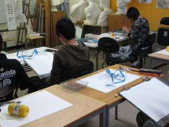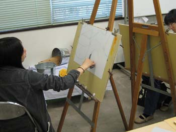 30 October 私立芸大実戦実技模試 本日彦根教室では、精華大学の実戦実技模試が行われました。模試ということで、通常授業よりも教室に緊張感があります。 グラフィックデザインコース「色紙による色彩構成」実際の試験でも使用される「セイカイロガミ」を使っての模試です。 芸術学部 共通の「鉛筆デッサン」大きいモチーフをB3画面に描くので、構図が難しそうですね。映像コースの「色彩表現」まだ構想中なので、色がありませんが色彩です。などなど。。。。。それぞれの専攻、コースの課題を試験と同じ時間で行っています。精華大学の試験は、コースごとに特色がありバリエーションが豊富ですね。模試なので、制作の途中段階で口を出すことはできませんが、その分、自分の現在の実力や苦手な部分、足りない部分が、はっきりと認識できたのではないでしょうか。講評会の中でも何度も確認しましたしね。試験はもうすぐ。最後まで気を抜かずにいきましょう。余談ですが、普段の彦根教室は、2Fで受験生、3Fで高校1,2年生の授業を行っていますが、本日は2Fが模試会場のため、通常授業に来ている受験生は3Fで授業。なんで、3Fが満員状態。新たに机を出してきて対応してました。 こちらも、いつもと違う緊張感がありました。<S.I> [0回] 2011/10/30 (Sun) 16:55 彦根教室 Trackback() Comment(0)