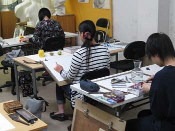 14 October 日本画教室 in 彦根 こんばんは。 彦根教室では受験生以外にも、中学生から社会人まで一般の方々も授業に参加されています。 その中で日本画を習いに来られている方の様子をちょっとご紹介。 この日本画教室では、実際に岩絵具を使います。 天然の鉱物からできたものや、科学的に作られたものも使います。 色とりどりできれいですね。 お皿に岩絵具と膠を混ぜて1色ずつ作ります。 何百種類もの中から自分で色を調合するので、なかなか手間がかかりますが、その分とても愛しい画材でもあります。 意外な色の組み合わせで、思いがけない色ができると嬉しいですし、 そういう発見の積み重ねが次回への意欲に繋がって楽しいですよね☆ (森) [0回] 2011/10/14 (Fri) 21:12 彦根教室 Trackback() Comment(0)