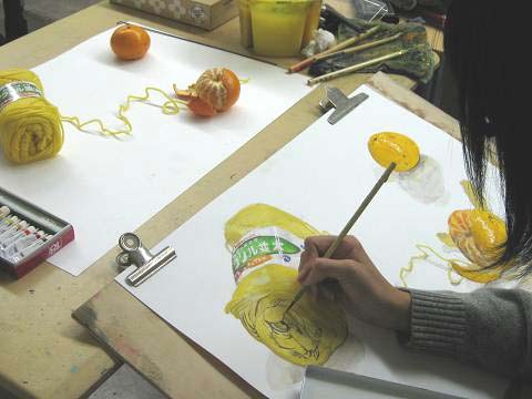 27 September 香り漂う こんばんは。京芸補強も2週目に入り、今回の描写のモチーフは扇子と豆絞り。けっこう気の遠くなるモチーフですが、扇子の白と豆の黒の鮮やかさが綺麗です。 私大受験後でマンガの模写をしたり…いろいろな課題をしています。一方、通常課題の方はみかんの着彩です。皮を剥いて描くので、部屋中がそれはそれは爽やかな香りが漂っています。と同時に思い出されたのが、私の受験時代、生魚を1日中細密描写したことがありました。良い思い出ですがけっこう大変な匂いでした。幸い、私は魚が大好きなので、その生臭さに耐えられないというようなことはなかったですが。より良い作品を求めるにあたって、「匂い、もしくは香り」って大切だと思います。モチーフを感じることの一つに「匂い」があるんだと思います。絵からそのモチーフの香りが漂ってくるような感じ。花を描いたらその花の清らかな香り。みかんを描いたら甘酸っぱい香り。生魚を描いたら、いい意味で少し生臭かったり。(あまりにも不快を抱くような匂いはどうかと思いますけど…そこまで酷い匂いのものはモチーフ対象にはならないでしょうね。)まとめますと、モチーフらしい匂いを感じる作品て、魅力的ですね。さて、いよいよ今年も残すところ1/4となりましたが、体調管理に気をつけて過ごしましょう☆(森) [0回] 2011/09/27 (Tue) 21:13 彦根教室 Trackback() Comment(3)
