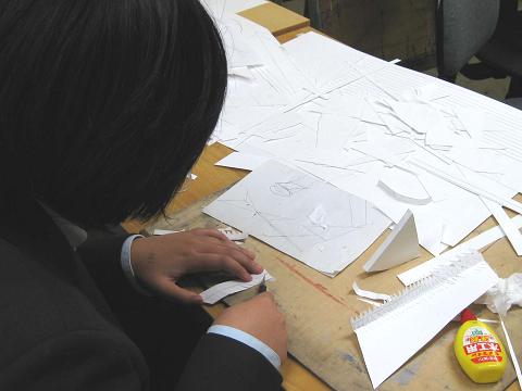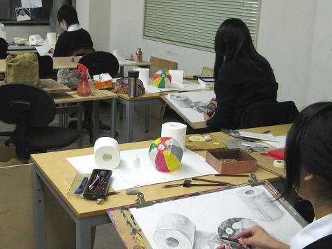 06 October たまにはやけくそ こんばんは。今週の京芸組は紙風船とトイレットペーパーのデッサンです。 色彩をしたり。基礎生はケント紙で立体です。中には立体デビューの子もいるので、のりしろを作るのも大変そうです。 ケガしないでね…!立体って、初めの頃は特に本当にややこしいですよね。イメージをかたちにする?抽象って何?って。またまた私の思い出話ですが、受験対策で立体を始めた頃は本当に大の苦手で、嫌で嫌で仕方ありませんでした。立体の課題があるとテンション下がりまくり。そんなある日、そのストレスが溜まりに溜まって、ついに爆発しました。やけくそです。もうどうでもいい、失敗してもいいやと、開き直りの中作りました。そして、意外にもその作品がかなり好評だったのです。その瞬間から、私は立体大好き人間になりました。それ以来、立体の課題は楽しみで仕方がないといったまでになりました。人間、思い込みってすごいです。「私はこれが好き、大好き!」って心底思えると、こわいものはなくなるんですね。未だに制作中、スランプに陥ることはよくありますが、その度にある種やけくそになって自分を真っ白の状態にしています。何度やっても同じようになってしまう。失敗するのが怖い。っていう人は一度やけくそになってみてもいいかもしれません。毎回やけくそでは困りますが…。本番のために、今のうちにいっぱい失敗しておきましょう!<森> [0回]PR 2011/10/06 (Thu) 21:05 彦根教室 Trackback() Comment(0)