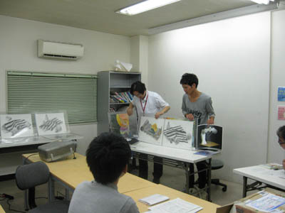 22 August 京都市立芸術大学説明会in滋賀・彦根本部教室 8/19(金)、北山教室に続き、彦根教室でも京都市立芸術大学の説明会を行いました。 北山教室と同じく、京都市立芸術大学より教務学生支援室の金谷さんに来ていただき、京都市立芸術大学の授業の様子や、取り組み、それがどのような形で社会に繋がっていくのかを、わかりやすく説明していただきました。そして彦根教室には、アスク卒業生で、現在 京都市立芸術大学 美術科1回生の佐竹くんに来てもらいました。佐竹くんは、昨年の春に進路を芸大へ変更(それまでは、一般大学を志望し浪人していました)し、全くの初心者の状態から1年で京芸に合格した生徒です。合格時の再現作品と、春期講習で初めて制作した作品を見比べながら、1年間の流れに沿って話しをしてもらいました。説明会後は、佐竹くんの受験時代の作品を見ながら質問タイム。さらに、佐竹くん以外の生徒の再現作品を持ち出して、ここどうやって塗ってるんですか?なんて質問も…。佐竹くんも気さくな感じで、色々な質問に答えてくれました。具体的な京芸での授業内容の話に加え、実際に京芸に通う先輩の話に、皆モチベーションがあがったのではないでしょうか。また、お忙しい中ご参加いただいた、保護者の方もありがとうございました。<S.I> [0回] 2011/08/22 (Mon) 00:04 彦根教室 Trackback() Comment(0)