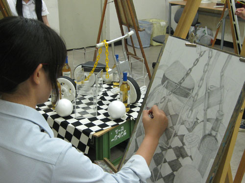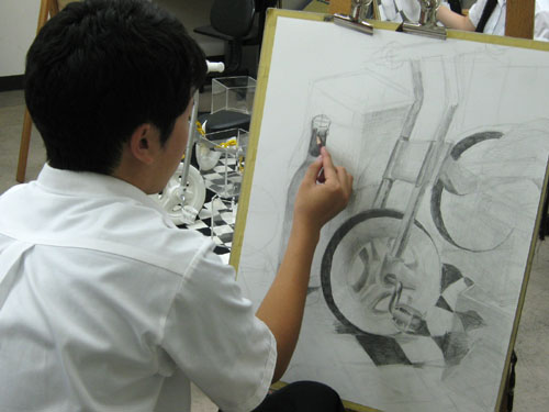 24 August 明日は私大模試で、明後日は京芸模試講評会 こんばんは。いよいよ夏期講習も終盤となりました。残すところあと1週間。やっぱり、あっという間の夏でしたね。今日の彦根教室の様子です。 チンゲン菜の模刻をしたり、 色彩、立体、建築学科対策をしたり。さて、明日8/25(土)は七条教室と彦根教室にて私大模試があります!私大の推薦で行われる実技試験を、本番と同じ形式で行います。模試の問題はそれぞれの大学、専攻別に傾向を分析し、作られたものです。大学の試験後は講師が採点し、講評も行います。そして明後日8/26(日)は、北山教室にて京芸模試講評会があります!彦根教室からは無料送迎バスが出るので、行きも帰りも楽ちん♪みんなどんな結果が出ているのか非常に気になる…。落ち込んだり、嬉しかったり、いろいろ感じることがあるかと思いますが、どれもぜ~んぶ経験すべき大切なこと。いっぱい刺激を受けましょう!!(森) [0回] 2012/08/24 (Fri) 19:35 彦根教室 Comment(0)