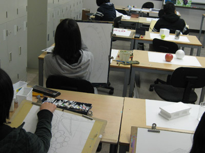 23 April 造形トレーニングin彦根 こんばんは。彦根教室の森です。今日は「造形トレーニング」のご紹介。彦根教室では今年度から高卒生クラスが新設されました。そのコースでは実技だけではなく、講義型の授業も行われます。先週は「美術史」、今週は「造形トレーニング」が行われました。今日のテーマは「構図、構成」です。 作品の第一印象は構図で決まるといっても過言ではないでしょう。色、質感がどんなに魅力的に表現できていたとしても、「構図」が良くないとせっかくの魅力が半減してしまいます。 例えでいうと料理の盛りつけでしょうか。私が中2の時、日曜の昼下がりに初レアチーズケーキ作りに挑戦した時のお話です。ココアのスポンジ生地に、ヨーグルトの入った爽やかなレアチーズケーキを作りました。喜ぶ家族の顔を思い浮かべながら頑張って、必死で作りました。けれどもできあがったのは、ゼラチンがうまくいかず、どろっどろのケーキ…。あれ、おかしいな…こんなはずでは…。まずそう…。ココアの黒とクリームの白のコントラストはきれいなんです。分量もきっちり量ったので、味もおいしいんです。けれども見た目が悪いばっかりに、そのおいしさは半減し、もっと食べたいという欲求がわきません。家族は頑張って作った私のために、「ちょっと見た目はあれだけど、おいしいね」と食べてくれました。そして、祖母は時間をおいて、二切れ目を食べていたのです。「おばあちゃん、無理して食べなくていいよ~。(ちょっと嬉しいけど)」と言うと、「ヨーグルトが入ってるし、健康のために食べてるんよ。おいしいわ~。´ ▽ `」と、悪気のない答え。嬉しさ半分、寂しさ半分…。このことから、構図(見た目)の重要性がわかったでしょうか。どんなに色や質感、細かな描きこみ(素材、味)が良くっても、構図(見た目)が失敗してしまうとそれまでの努力が台無しになるのです。もっと観たい(もっと食べたい!)と思えるような、魅力的な構図を目指しましょう!失敗は成功のもと。めげずに何度でも挑戦してくださいね。(森) [0回] 2012/04/23 (Mon) 21:04 彦根教室 Comment(0)