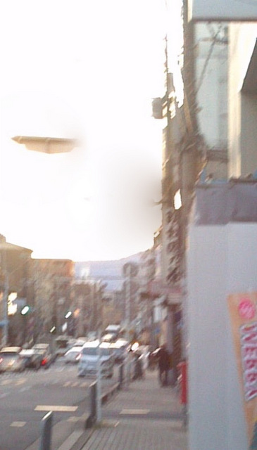 西の空にUFOが浮かんでいると思ったら、案内標識でした。