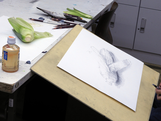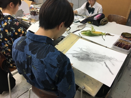 本日はデッサン補強最終日。細かいとこころまで観察して描いています…φ(..)