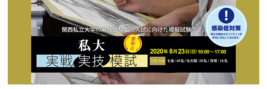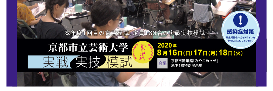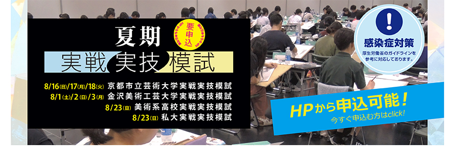 京都アートスクールでは夏期講習中に、京芸・金美・私立大学・美術系高校の受験生向けの模試を開催します!
