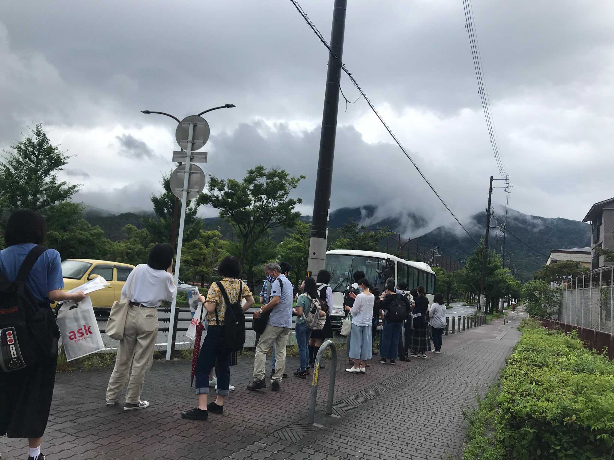 朝から雨で不安な天候ではありましたが、今は雨が上がって多くの方がスクールバスのりばに訪れています