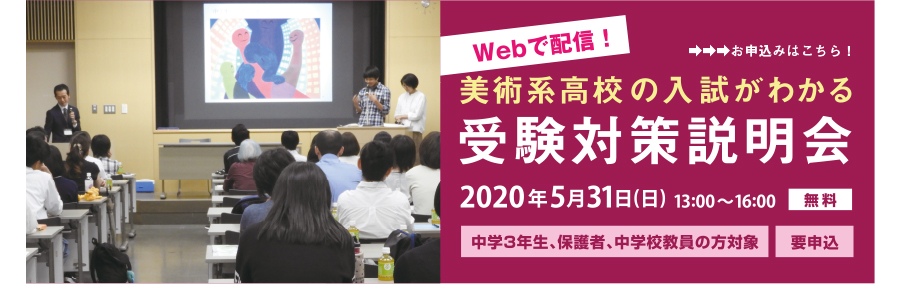 コロナウイルス感染拡大防止に伴い、この度5/31(日)「美術系高校の入試が分かる受験対策説明会」をweb配信で行います。
