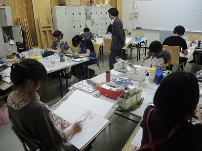 10 October 授業報告 今週の七条校STSPでは、色彩課題の作家研究・自画像が行われています。描写と聴くと、修行僧のような、なんだか堅苦しい印象に聴こえる自分ですが、色彩と聴くと、なんだか軽やかな印象を持っています。その印象通り、教室も華やかで賑やか。一般の人が抱く美術の印象ってのは、こういうモノなのかもしれませんね。 夜間の授業でも、これまた「日本の匠」をテーマにした色彩課題が始まりました。「描写、日本の匠」と聴くと、なんだか怖い、昔気質の師匠が思い浮かび、堅苦しく聴こえますが、「色彩で日本の匠」なのでこれまた軽やかな耳障りです。 秋の特講は、京芸補強と国公立・私大対策が行われ、京芸補強ではこれまた軽やかな色彩課題です。 忙しいと、人は知らず知らずその場の空気を殺伐とさせてしまいます。私も気をつけます。そんなときほど、軽やかに行きたいですね。田和 [0回]PR 2013/10/10 (Thu) 18:18 アスクでのこと Comment(0)