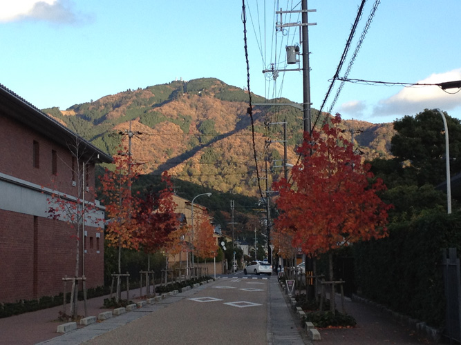 02 December 秋から冬へ こんばんは 保田です。秋ですね。イヤもう冬ですか。 北山校勤務時は自転車通勤してます!この時期になると、京都アートスクールの「京都」の部分をアピールすべく紅葉やら寺社の特別拝観、いかにも「芸術の秋」的な展覧会の話題などをブログで紹介しがちな保田です。なのですが、今年は9月以降、ほとんどどこにも行けてません。忙しかったり、休みが夫婦別々になりがちだったり、そんな場合、外に出ず、家の掃除を命じられ外に出させてもらえなかったりで...。残念です。せっかく京都に居りながら...。前も紹介したJR東海の「そうだ京都、行こう」にもあるように大人はひと秋ごとに何か大事なものを身につけてゆきたいのですが...実際は、京都在住の人にとってみれば、それどころじゃないんですけどね。かき入れ時ですからね。料理旅館で働いている妻などに至っては、例年通りの「地獄の秋」だったりします。しかし、先週、とうとう夫婦の休みが合いまして外に出ました。妹がくれていた映画のタダ券が11月いっぱいで、また、妻の職場の知り合いからもらっていた知恩院のライトアップのタダ券も期限が迫っていたので、ランチ(モスバ)~映画~ライトアップ~豪華ディナー(といっても、カレーうどん)というやや強引な秋満喫な1日を過ごしました。 仏像は高すぎてよく見えませんでしたが、高さに意味があるとも思えました。なかなか良かったです。しかし、僕は基本的にはライトアップはあまり好きじゃないです。なぜならば、ライトアップしたところ以外暗くて見えない。当たり前ですが。しかし、もっといろいろ見たいのです。『漆黒の闇の中にあでやかな真紅の紅葉が幻想的に浮かび上がる』演出とか、『これぞ、というものだけに絞り込んでクローズアップする』演出、なんてこともわかるのですが、実際は、よほど昼間の方が良いと思う。今回はじめて行った友禅苑も、昼間行ったらもっとすばらしいはず。しかし、受験生ぐらいの頃の自分はそれに気づいてなかったのも事実。京丹後の田舎で、自然にまみれて育ちましたが、ただの山や川としか感じてなかった。当日も、若い人が非常に多くてにぎわってましたね。美しさに感動していた様子でした。たぶん、いったんこうやって、あえて演出するということが、最初は必要なのかもしれません。そうして、演出された「紅葉の美」を理解した後、実は日常の紅葉の方がよほど美しかったりするということに気づく、という順番なのかもしれませんね。 ただ、北山通りの「日常」も、都市計画の産物でもあります。 比叡山にほど近い岩倉、同志社高校前より。コーナン駐車場より。 夕照の比叡山の美しさ...。しかし、ここにも「借景」という作為があったりします。コーナンはそこまで考えてないと思うけど。 紅葉の次はクリスマス。リニューアルされたノートルダム女学院のツリー楽しみです。ここのツリーはほんとにセンスが良く、さすがと思わせられる。 世界最大級の知恩院三門。ライトアップは紅葉より建築ですね。大迫力でした。なんだかんだで、結局楽しみました。今回、楼上内部に入ることができたのは特に良かったです。タダ券もらっていろいろ言ってごめんなさい。さて、映画ですが、TOHOシネマズのタダ券をもらっていたので検索してみると、今は携帯でチケットが買えるんですね。二条のTOHOシネマズはじめて映画を見に行きました(今ごろ)。ものすごく館内が綺麗で居心地良くて、むしろ、そこに感動した。いろいろな映画がありましたが、「かぐや姫のものがたり」か迷いながら、「風立ちぬ」にしておきました(今ごろ)。結果、良かったですね。※かぐや姫~の方も名作らしいですね。また、見に行きたい。妻は、感動して素晴らしい映画だったと泣きながら言っていましたが、僕は、良かったとは思うものの、映画とかアニメーションの評価基準が自分の中で確立しておらず、実際良い映画といえるのかどうかはよくわかりませんでした。泣いたけどね。宮崎駿のアニメを映画館で見たのは「トトロ」以来なので約20年ぶりぐらいなのですが、宮崎駿という人はよほど空が好きなんだなと思った。というより、飛行機がということでしょうか?僕は映画とかアニメが苦手で、今回もタダ券があったのと、妻に引っ張られしぶしぶ行ったのですが、入る前はすごくおっくうになります。2時間も拘束されるのが恐ろしいのです。飽きたらどうしようか?と。(実際に飽きることはほとんどないのですが)そんな自分も子供の頃はアニメを普通に見ていました。宇宙戦艦ヤマト、ルパン三世、鬼太郎に、はくしょん大魔王、そして妖怪人間ベム。70年代は一つのアニメ全盛期だったのではないでしょうか。しかし、そんな中でも、小学4年か5年の時、『未来少年コナン』を始めて見た時の衝撃はいまだ鮮烈です。で、その時の鮮烈な場面もやはり、空であり、飛行機だった。あと海。それまでのアニメにはない、『激し