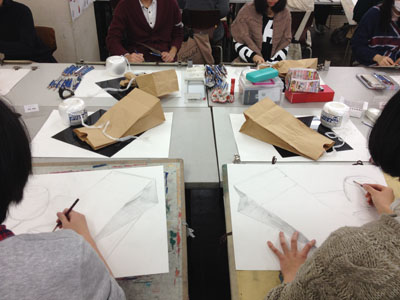 26 January 無題 こんばんは、保田です。直前講習開始から早くも1週間。1月22日(水)彦根校 通勤中は寒いですが勤務中は熱い。(しかし、冬の琵琶湖は美しい!/瀬田川より撮影)講評に望む態度もすごく真剣。その調子でがんばろう。ただ、もっと質問があってもよかった。1月23日(木)、24日(金)七条校 上左)朝の京都タワー、上右)夕暮の京都タワー(七条校窓から撮影)京芸クラスは1日2課題。2日とも、2課題目の方が全体のレベルが上がる傾向もうれしかった。1月26日(日)北山校 開始直後のデッサン 完成直前のデッサン 土日は少しだけ余裕のある時間設定。その分、じっくりと手直し制作してほしい。保田は少しずつ各校で勤務していますが、それぞれ熱いですね。この熱さを入試まで維持してほしい。(もちろん、途中、休憩もあっていいです)中には、既に「何もアイデアが出ない!」と、てんぱったりしている生徒も見かけますが、そんな「精神的追い込まれ」も含め、直前講習は、本番に向けての練習です。一日一日大切に過ごしてほしいです。講師は見守っているので、何かあれば何でも相談しましょう。...しかし、保田は明日から1週間、島根県に出張に行きまーす!松江と出雲の美術部員達(1・2年生)に立体構成を教えてきますよー!(楽しみ)一応、遠くの空から、見守っていると思っておいて下さい...。保田 [0回]PR 2014/01/26 (Sun) 18:07 アスクでのこと Comment(0)