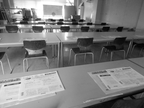 10 August マーク模試中止に関して 暴風警報発令中のため、本日の授業は休講となりました。振替対応を行っておりますので、ご不明点ございましたらお気軽に本部までお問い合わせ下さい。本日実施予定だった第2回マーク模試も中止となりました。(涙)誰もいない模試会場… マーク模試受験者にはメールもしくは電話にてご連絡しましたが、第5期間目夜間の時間を使って追試を行います。やむをえない事情のため参加できない場合は必ず本部までご連絡下さい。風と雨が強くなってきました。できるだけ外出は控え、安全第一に行動しましょう。ナカニシ [0回]PR 2014/08/10 (Sun) 10:22 アスクでのこと Comment(0)