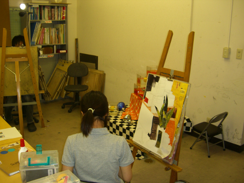 04 September コラージュの素材 こんにちは片岡です。今週と来週は大作週間で普段は描けない大型モチーフを1週間で制作する貴重な時間です。月曜日(WSSは土曜から)からコラージュの課題なので各自コラージュ用の素材を持ってきてください。何を持っていけば良いか分からない人のためにほんの1例を挙げておきます。※あくまで1例なので自分で探すことが大切①色紙ー王道です。一言で色紙といっても様々な種類がありますミューズコットンやラシャ紙など②新聞紙ーこれまた王道です。英字新聞ならおしゃれ感が出るかもしれません・・・③雑誌ー新聞紙と似ていますが色々な写真や紙質の違うものをそろえると良いでしょう。大きな写真がたくさん載っているものが良いです。④ダンボールや厚紙ーあまり使いすぎるとゴテゴテになりそうですがうまく使えばおしゃれに!日比野克彦みたいになれるかも!⑤クラフト紙ーこれも素朴な色がダンボールに近いです。⑥布ー貼りにくいですが人と違ったおしゃれ感を出すにはこれしかない!⑦皮ー今までこれを貼っている人を見たことが無いです・・⑧金箔、銀箔ー金箔は高いですが銀箔はそんなに高価ではありません。でも貼る(押す)には技術が必要です。大学に入ってから使いましょう。⑨包装紙ー色んな柄があって楽しそうです。⑩トレーシングペーパーー下の色が透けます。⑪布団ーやめときましょう⑫テーブルーやめてください。画面にコタツを貼った人を知っています・・・この場合アッサンブラージュになるのかな素材を探し集めているところから制作は始まっていますし、集めることが楽しくもあります。昨年度の彦根校のコラージュ課題の様子 夏期講習最終日にみんなでパイナップルを食べました!本文とは関係ありません。 ではまた [0回]PR 2014/09/04 (Thu) 20:27 アスクでのこと Comment(0)