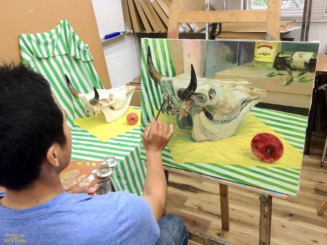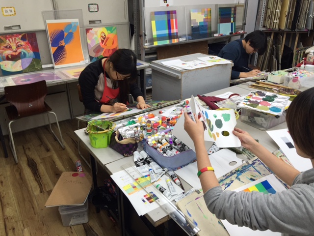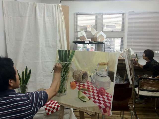 11 November 北大路校風景/佐渡先生 日展「特選」 こんばんは保田です。本日は、北大路校から 授業の様子をお伝えします。 午後ST授業 造形トレーニング(色彩)テーマ:色のドミナント 夜間WSS授業 奥:通常授業(自画像)/手前:私立対策講座いよいよ関西私大の推薦入試が山場を迎えております。そして国公立志望者にとっては、ひたひたとセンターの足音(?)が迫ってくる。…。京都の秋といえば紅葉ですが、ここには、まったく別の秋=「受験の秋」があります。さて、ここからは「芸術の秋」の話題なのですが…現在東京の国立新美術館で開催されております「改組 新 第1回(平成26年度)日本美術展覧会」(所謂「日展」です)において、京都アートスクール副学長の佐渡一清先生が出品されている作品が、なんと、洋画部門の「特選」を受賞されました。「なんと」とは、佐渡先生に失礼ではないか、と言われるかもしれませんが、日本最大規模の総合公募展「日展」の「特選」なのだから、すごいことです。ということで、ブログで紹介させてもらいたいのですが、受賞作品の写真もありませんし、保田もまだ見に行っていませんので…(12月13日(土)~1月18日(日)京都市美術館に来る予定)日展のHPに何か手がかりはないかと検索したところ、「特選受賞者・授賞理由」というページがあり、佐渡先生の作品についてのコメントがありましたので引用させてもらいます。作家は優れたデッサン力と構成力をもって人物画に正面から取り組んでいる。省略された余白の処理も的確で女性の存在感を強く引き出し、特選にふさわしい秀作である。とのことです。「デッサン力と構成力」は、まさに佐渡先生が指導の中で常に強調さえていることなのですが、さすがですね。 佐渡先生の指導風景を紹介しているブログへ受賞作品を見せられないので、上記の文章から想像してもらうしかないのですが、ヒントとして、昨年の秋に京都でグループ展に出品されていた作品を紹介させてもらいます。 ↑この展覧会を紹介した昨年度のブログページへ(あ、ここでも上が色彩のドミナントで下の方が佐渡先生、「なんと」2年連続で同じ構成でした!)佐渡先生おめでとうございます。最近、北大路校のアスク美術倶楽部でも油彩を熱心に描いている生徒さんが増えていますので美術倶楽部のみんなと見に行きたいと思っています。(受験生にはちょっと厳しい時期ですからね) 保田 [0回]PR 2014/11/11 (Tue) 01:53 アスクでのこと Comment(0)