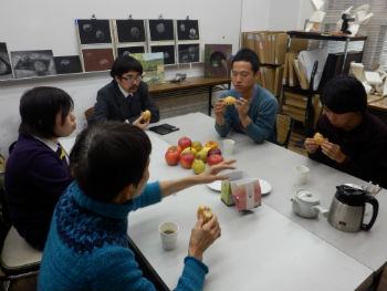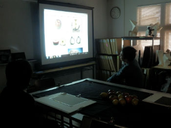 07 December ask美術倶楽部 公開特別授業 本日 ask美術倶楽部では公開特別授業を行いました。今回のテーマは「スクラッチボードでデッサンをしよう!」です。授業の始めに、保田先生からプロジェクターを使って、明暗について、基本的な形の取り方などなど導入があった後、いざ制作。 通常のデッサンとは違い、白黒反転しているので、やや描き始めに皆苦戦していました。 通常のデッサンならば、明暗や陰影を鉛筆の濃さ・硬さを変えながら書き込んでいくのですが、今回はスクラッチボードにスクレイパーペン1種で画面をけずっていくのみです。けずる線は、スクレイパーペンの向きを変えて、太い線と細い線を重ねて書き込んでいきます。また、光の当たった静物を描くため、通常のデッサンと違う書き方に、描き始めは皆さん手こずるような様子でしたが、書き出すと皆集中し、最後まで作品を仕上げていきました。あとは、線一本一本書き込む時に消せないという緊張感があります。 長年通って頂いているUさんも、書き出しはやや緊張気味でしたが、書き始めるとどんどん書き込んでいかれました。 あっと言う間に制作の時間は過ぎ、最後は保田先生からの全体講評と、一言一言自分の作品に対して感想を言ってもらいました。最後は恒例のお茶会でしめくくりです。普段は各自が希望するデッサンや油画、色彩などの絵を描いていますが、皆が同じ目的を持って絵を描くと、交わす言葉や意見、感想などが言い合えるので良いなと思いました。次は来年になりますが、また公開特別授業を行いたいと思います。木村 [0回]PR 2014/12/07 (Sun) 17:23 アスク美術倶楽部 Comment(0)
