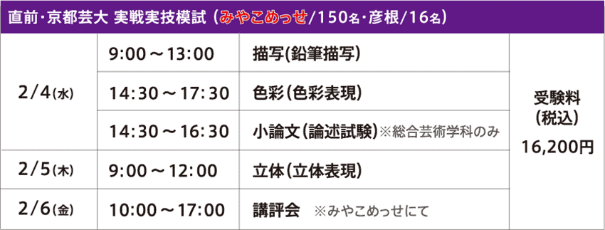 05 February いひおほせて何かある 受験に挑戦しながら、必死に青春を過ごしている君らは美しい、と僕は思います。(僕自身の受験は既に過去のものですが・・・)今も美術にすがりつきながら、ここでこうして講師をしている自分が居ます。毎年、別れもあれば出会いもある目まぐるしい受験の現場でも、美術を扱ってる以上それは楽しいものです。 2月6日(金) 10:00~17:00 ※講評会(みやこめっせ)を開催します。点数や順位だけでなく、何かを得る機会にして欲しいです。遅刻無きようお願いします。田和 [0回]PR 2015/02/05 (Thu) 12:42 アスクでのこと Comment(0)