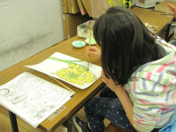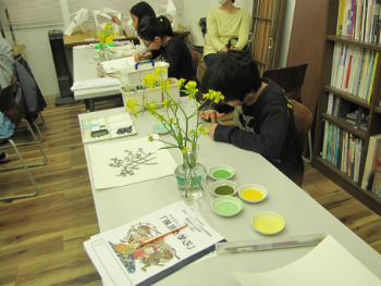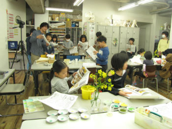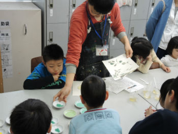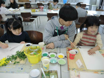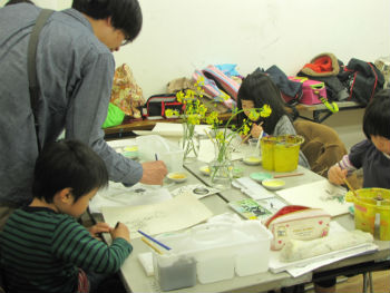 18 April 岩絵具で描こう! こんにちは。本日は濃いいブログ更新となります。京都アートスクールでは、受験部門とは別に、こども造形表現教室を行っています。当教室では、2015年の琳派400年記念祭を機に、琳派について学び、京都の伝統美に触れようという企画、「古典への憧れ」を行っています。先日、第1回目の琳派授業「岩絵具で描こう」が開講されました。様子をご紹介させていただきます。まず、琳派とはなにでしょうか。なんとなく、聞いたことがあっても説明できる人は少ないと思います。琳派とはなにか、はじめにお勉強をして、授業に入ります。今回、こどもたちに知ってもらうために、琳派のまんがを作りました。 写真や絵がたくさん入っていて読みやすいので、熱心によんでくれていました。北大路の教室長 佐竹先生が書いてくれました。絵と同様、やさしい先生です。さて、岩絵具の授業に入ります。導入では、絵具の作り方をレクチャーします。岩絵具とは、自然の鉱石を砕いて粉状にしたものです。「にかわ」という動物の皮や骨を煮た液体をまぜて、絵がかける状態にしていきます。 新しい素材に興味津々。身を乗り出して、先生の手元を見ています。素材のことも、「がんばるくん」という導入プリントでお勉強するので、「にかわ」について教えてくれる子もいました。 描くモチーフは、「菜の花」でした。指や筆をつかい、よく観察し、楽しく描けていたと思います。 完成作品の一部は、「琳派こども作品展」で展示します。(会場みやこめっせ)琳派こども作品展 9/5(土)~9(水)琳派の特別授業は全10回です。そのほか、一般公開の琳派特別授業もあります。こちらは1回ごとに参加ができるので、この機会に新しい体験をしてほしいと思います。コジマ [0回]PR 2015/04/18 (Sat) 21:43 こども造形表現教室 Comment(0)