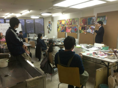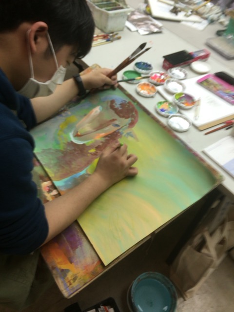 17 November 色彩ウィーク こんにちは。北大路STSPクラスは昨日から色彩ウィークに突入しています。5日間同じ制作時間で色彩を連続して取り組みます。この取り組みの最終日に、自分に何が得られているべきなのか 考えてみるのも良いかもしれません。課題に取り組む前に何を習得する為の課題なのか改めて考えてみると、頭を整理して始められるのではないでしょうか。 造形トレーニングで作成した絵肌見本も良い資料になります。是非参考にしてください。 さて、昨日は北大路校にチーズケーキを持ってきてくれた生徒がいました。お父さんの手作りだそうで、私もいただきました。とてもおいしかったです!学科の先生にも食べてもらっていました。皆さんも制作が続く毎日の中に、ほっとできる時間を作って下さいね。和田 [0回]PR 2015/11/17 (Tue) 18:19 アスクでのこと Comment(0)