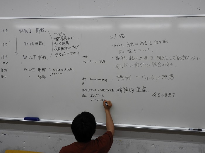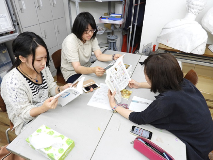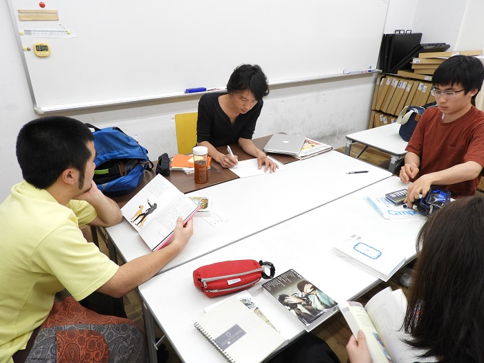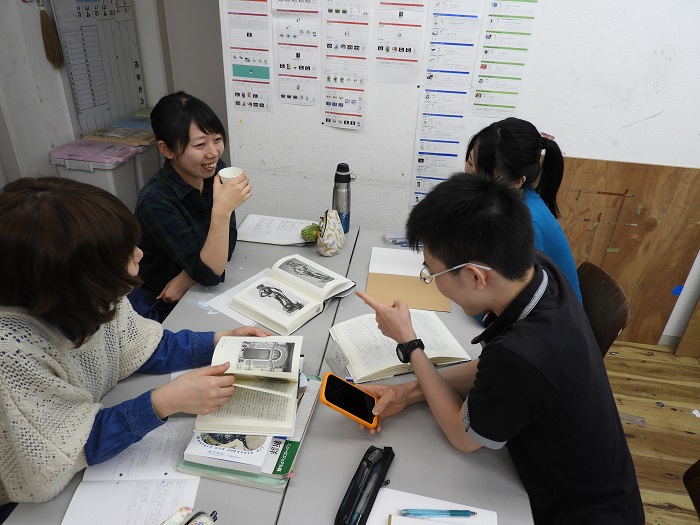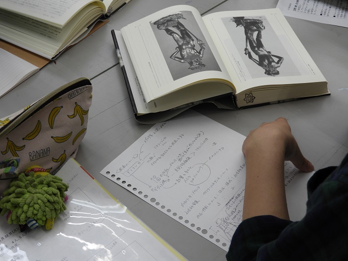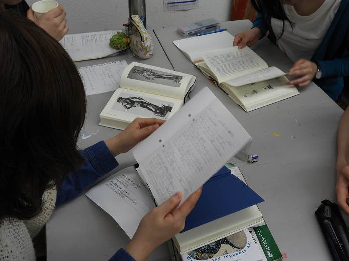 29 May 「美術史」の様子 こんばんは。北大路校より上杉です。高卒生の通うSTSPコースでは実技演習の他、実技関連科目という授業があります。ASKの高卒生コース「ならでは」の授業です。本日紹介する「美術史」も実技関連科目の一つです。本日は北大路ST生の美術史の授業風景をお伝えします。ASKの美術史では「美術史を楽しむ」をコンセプトに、グループ研究を行います。美術史に登場する作品を1点、研究テーマとして選び、グループで研究を行います。前期期間中、全4回ある美術史の最後の授業では研究成果を発表してもらいます。発表形式は自由ですが、ただ単にネットや本からの情報をまとめるだけではなく、各グループなりにその作品を考察し、その作品に対する「意見」のある発表にする事が条件です。 本日北大路ST生は第2回目の美術史。この週末に各グループで集まり、図書館で参考文献を沢山借りてきたとの事。机の上に様々な本が並んでいます。また、家で担当範囲をノートにまとめてきた生徒もいました。ノートPCを持ち込んでいる生徒もいます。それぞれのグループ、非常に熱心に話し合いを行っています。再来週の発表が、非常に楽しみです。上杉 [0回]PR 2017/05/29 (Mon) 22:08 アスクでのこと Comment(0)