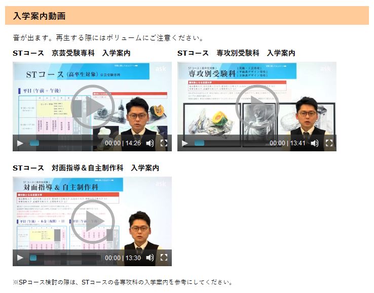 アスクのホームページには、授業内容の説明動画がいくつか掲載されています。