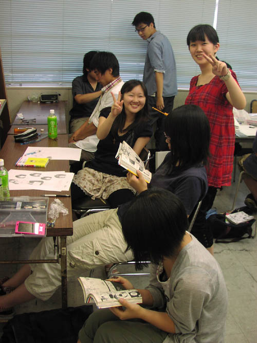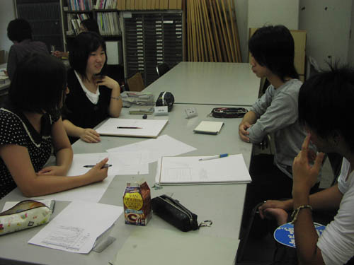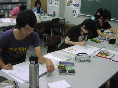 08 August ☆七条教室 灼熱の時☆ こんにちは。杉太郎です。今日は連日七条教室で繰り広げられているホットな講習の様子を、写真を交えてリポートしていきたいと思います。生徒達の頑張りや、熱気溢れる教室の雰囲気が伝われば幸いです。 AO入試に向けて、京都造形大学、京都精華大学、嵯峨芸術大学、成安造形大学各大学、コースの様々な課題を制作しています。 ↑京都造形大AO対策クラス、グループ制作の様子。それぞれの意見を出し合いながら「アアでもないコウでもない…。」最終的には、一人では辿り着けなかったアイディアに到達できました。プレゼンにも各グループ、趣向がこらされており、聞きごたえがありました。↓ここからは、お昼休みの模様をお届けします。こちらはマンガ・キャラクタークラスの生徒達。お勧めの漫画を貸し合っているみたいですね。同じ価値観を持つ友人が出来るのも講習の醍醐味。ホント、みんな仲が良いです。精華のAO入試まで残り二日。ラストスパート頑張って下さい!! ↑おや? なんかおかしな立ち位置で話しをしている2人がいます。クーラーの風が一番良く当たる場所だとの事。普段は七条教室、北山教室と別々の教室に通っている2人。講習期間を通して、仲良くなりました。↑校内生、講習生の男三人組み。知らない間に意気投合していた様子。 ↑愛媛県から講習に来てくれている基礎生の3人組みです。デッサンも着彩もまだまだ経験が浅く、よちよち歩きですが真摯に制作に打ち込む姿勢、心打たれます。↑「間に合わない~。」昼休憩を早めに切り上げて絵本制作に打ち込む講習生のIさん。完成した絵本は何とも…素敵でした。暑く、長かった夏期講習も残すところ3週間になりました。ようやく出口が見えてきましたね。皆さんにとって一生の思い出に残るような、夏になればと思ってます。私大受験生の皆、今週から始まるAO入試、頑張ってきてな! 杉太郎 [0回]PR 2011/08/08 (Mon) 12:00 アスクでのこと Trackback() Comment(0)