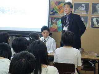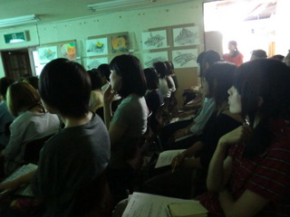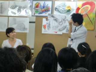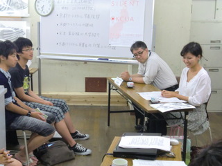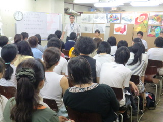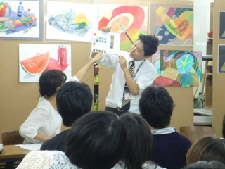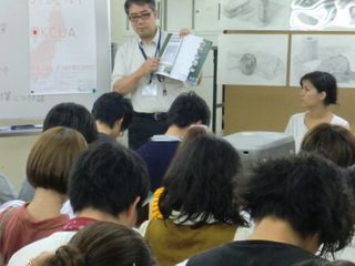 17 August 京都市立芸術大学説明会@北山本部教室 こんにちは。 昨日8/16(火)北山教室で開催した『京都市立芸術大学 説明会』の様子を紹介します。サカグチです。 京都市立芸大の教務学生支援室より金谷さんに来ていただき、大学生活に関する話を聞きました。 1回生前期の総合基礎の話や4回生までの制作の流れなど、とてもイメージしやすくて、受験生にとって貴重な時間になったと感じました。 入試だけを目標にしてしまうと、大学入学後いったいどうしたらいいのか戸惑う可能性もあります。今のうちから大学での取り組み方を想像し、そのための勉強であることを改めて感じて欲しいと思いました。 受験勉強は大学生活と繋がっていて、大学生活はその先の社会生活と繋がっています。 そして、ASKの卒業生で、現在、京都市立芸術大学 デザイン科で学ぶ吉田さんからは、大学での実感や、浪人生時代の取り組み方について話してもらいました。 受験時代の隠れた努力も聞けました。 自分で考え取り組んでいくことの大切さが、話を聞いていた受験生にもきっと伝わったのではないでしょうか。 たびたび挟まれるサカグチの長めの相槌にも屈することなく、最後まで丁寧に説明してくれました。 説明会終了後、取り囲まれて、質問攻めを受ける吉田さん!! 保護者の方も含めたくさんの方に参加して頂きました。 ありがとございました。 片づけを手伝ってくれている様子。(決して遊んでいる訳ではありません) サカグチ [0回]PR 2011/08/17 (Wed) 12:45 アスクでのこと Trackback() Comment(0)