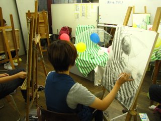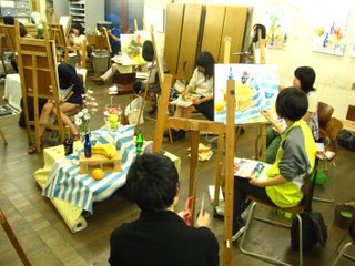 07 September 後期2週目 北山の様子 台風の後、空気がすっかり秋の装いです。朝晩は少し寒いくらいですね。そんな気候の中、北山教室ではSTSP生が構成静物に取り組んでいます。6週連続の構成静物課題は、今週で2回目。先週は描写でしたが、今週は着彩です。なので、組んであるモチーフも色鮮やか☆ 着彩課題ですが、もちろん鉛筆描写の生徒もいます。 今日は講評日です。時間を気にしながら制作することも重要ですが、楽しんで描くことも忘れないでほしい。自分の『描きたい部分』、『魅力を感じた箇所』を大切に表現してほしいと思います。来週はまた蒸し暑さが戻ってくるとのこと。果物を食べて、元気に過ごしましょう!(講評後、モチーフに使われた果物をみんなで食べるのが楽しみな マシヤマ☆) [0回]PR 2011/09/07 (Wed) 11:19 アスクでのこと Trackback() Comment(0)