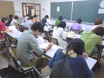 07 September 学科も実技も頑張り時。 水曜夜間は、スタンダードコースの「確認テスト」。後期からはセンター実戦問題を1題解きます。今日は、国語80分。先日、センター試験の出願手続書類も届き、緊張感が増してきました。2時間の勉強が終わってお疲れのところに嬉しいおやつが。前回ブログに書いておられたマシヤマ先生が着彩モチーフを切ってくれました。みんなの視線を3日間浴び続けた果物たち。右のキムチは生徒がお母様御手製ということで持ってきてくれたんです・・・美味でした。受験生は、センター対策に実技特講にとても忙しい時期です。でも!!今が!!頑張り時!!!よしい [0回]PR 2011/09/07 (Wed) 20:39 アスクでのこと Trackback() Comment(2)