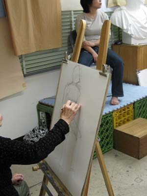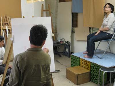 01 October クロッキー教室 in 彦根教室 こんばんは。今日からぐっと寒くなり、秋っぽくなりましたね。季節の変わり目は体調を崩しやすいです。注意しましょう(自分も含めて)。さてさて、本日は彦根教室の授業の様子を……と思ったのですが、高校生はテスト期間に突入し、欠席する生徒が目立つのに加えて、高校2年生は修学旅行シーズンらしく、全体的に生徒が少なめなので、授業と同時進行で行われているクロッキー教室の様子を少し紹介。 彦根教室では、毎週土曜 18:30~20:30 クロッキー教室が開催されています。参加者は、主に一般の方々で、自身の制作のためやクロッキーの練習、勉強など目的も様々。受験生の授業とはまた違う雰囲気で、モデル(主に彦根の卒業生で大学生)と、相談しながらポーズを決めたり、途中で制作について情報交換をしたりと、和気藹々とした感じです。ちなみにこのクロッキー会、入会金など類は必要なく、教室で販売している12回分のチケット(11,000円)を購入してもらえば、どなたでも参加できます。日常にあふれているけど、なかなか描く機会や場所がないのが人体です。気になる方は、是非教室までお越しくださいね。そういえば、冒頭で触れた修学旅行ですが、最近の高校生は(と言うとおじさんみたいですが…)ほとんどが飛行機で遠方まで行くのに加えて、滞在日数も4~5日と長いんですね~。行き先は北海道が多いようですが、中にはマレーシアなんて生徒も…。高校生の修学旅行で海外か…。うらやましいですね。まぁ、僕は飛行機が大の苦手なので、それはそれでキツイ気がしますが…。<S.I> [0回]PR 2011/10/01 (Sat) 23:51 彦根教室 Trackback() Comment(0)