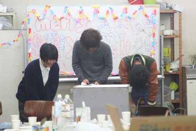 19 December ゴウカクリスマス さて、告知です。京都アートスクールでは、来たる12月30日(日) 18:30~北山教室にて「ゴウカクリスマス」と銘打ちまして、盛大なパーティーが催されます。「ゴウカクリスマス」です。豪華と合格とクリスマスを掛けた、見事な日本の話芸であります。山田く~ん、座布団取っちゃって。で、かわりに、でっかい油揚げひいてあげて。というわけで、というわけで? ともあれ受験生のハードな年の瀬を、ほっと一息飾るパーティーです。手品ができる、楽器の演奏できる、モノマネができる、漫談ができる、相撲がとれる、100mを9秒台で走れる。などなど、なにか一芸のある方は是非披露してください。模試講評会の後です。普段は違う教室で対策に励むみなさんの、せっかくの交流の場ですから、将来は、画家になりたい、一流のデザイナーになりたい、プロ野球選手になりたい、宇宙パイロットになりたい、幕下力士になりたい、素敵なお嫁さんになりたい、そんな夢もおおいに語りあってください。そういえば、プレゼント交換なんかもありますよ。詳しくは、各教室の講師にたずねてくださいね。去年の様子はやし [0回]PR 2012/12/19 (Wed) 18:40 アスクでのこと Comment(0)