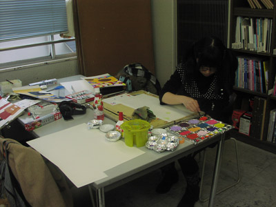 20 December 冬期講習 第1期間目の七条教室 こんばんは。七条教室より、実技講師の上杉です。冬期講習、高校1・2年生の基礎生達も、みんな頑張ってます。 ↑午後クラスの色彩課題制作風景 ↑夜間クラスの立体課題、マンガ課題の制作風景基礎生の描くデッサンは、なんかとっても良い。発泡円柱のデッサンには奮えました。「上手い」じゃなくて、「丸い」。持てそうなくらい、丸く描けてる。受験生時代、先生に「泣くくらい感動しながら描け」とよく言われていました。丸いことにたいして、赤いことにたいして、陰影にたいして、奥行きにたいして、泣くくらい感動しながら描く事が大事なんだと。基礎生のデッサンを見ていると、よくその事を思い出します。たぶん、観る事、描く事がまだまだ新鮮な時期には自然に備わっているんだろうと思います。百戦錬磨の受験生たちには、なくなっていく感覚じゃないのか。目に見える事に対して「感動したがり」の「感動しぃ」でいる事。感動がガソリンになる。そういった事が、実は、本当に大切な事なんじゃないのか。と思った冬期講習第1期間目でした。上杉 [0回]PR 2012/12/20 (Thu) 20:17 アスクでのこと Comment(0)