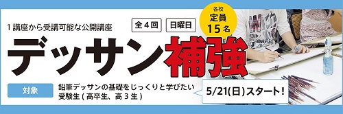 11 May デッサン補強講座 デッサン補強講座を全4回開催します。各回ともに、各教室でまだ申込みを受け付けております。 各講座ごとにテーマを設けております。単なるデッサン講座でなく、【補強】講座です。描けなかったモチーフを描けるように、苦手を得意にするための講座です。毎回この講座で、ぐっと描写力が身につく生徒をみてきました。前期期間のみの公開講座です。受験生はぜひ利用してください。お申込みはこちら田和 [0回] 2017/05/11 (Thu) 18:29 アスクでのこと Comment(0)