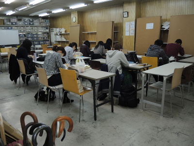 11 January 美術系高校 実戦実技模試 申込受付中です! NETセンターのマツカワです。1月11日となり、祇園えびす社ではえびす祭りがあり、新春の雰囲気から1月も半ばを過ぎようとする時節になったと気づきます。受験シーズンが本番に入ったことも受講生、生徒をみて思います。 京都・滋賀・大阪の美術系高校を受験する中学3年生を対象にした模擬試験が週末1月15日(日)10:00から始まります!各自の志望校の科目に合わせて、最大2科目受験可能です。イメージ表現と鉛筆デッサンを受験する生徒は10:00から、鉛筆デッサンのみ受験する生徒は13:00から試験を開始します。試験とはいっても「振り返り」ができる模擬試験です。実際の試験でどのような課題が出題されても対応できる力をつけます。最大の特徴は実技講師から講評を受けられることです。合格を目指す中学3年生のみなさん!実技の先生から受験前にアドバイスをいただくことは自信につながります。参加申し込みお待ちしています。 詳しくは事務局 01208-01209 へお問い合わせ下さい。またはHPでご確認ください。 [0回] 2017/01/11 (Wed) 13:01 アスクでのこと