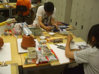 28 July 彦根校の様子 どうやら梅雨も明けたようなので、胸を張って夏バテできると意気込んでいる林です。ほとんどの高校が夏休みに入ったらしく、現役生で占める彦根校の夏期講習もにぎわいを増してきました。 AO対策、京芸色彩、国公立色彩、私大色彩、国公立油彩、基礎立体、と制作課題もバリエーションに富んでいます。そして、それぞれの制作姿勢に強い意気込みを感じます。たまに、何に意気込んでるんだ、という人をみかけますが、そうならないようにしてください。自分の意気込みが適正なものに向けられたものなのか、クールに判断していく必要があります。しかし、暑い毎日ですね。気を許すと頭がぼーっとしてきます。まだまだ続く夏期講習、みなさん体調にはくれぐれもお気をつけて。林 [0回]PR 2016/07/28 (Thu) 20:50 アスクでのこと Comment(0)