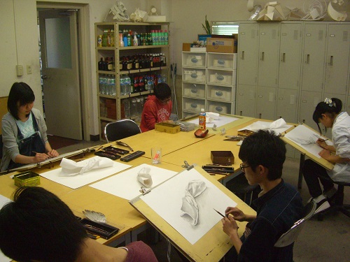 06 May 春の無料デッサン講座の様子 こんにちは彦根校から片岡です。本日のブログは昨日5月5日こどもの日に京都アートスクール各校で行われた春の無料デッサン講座の様子をお伝えします。最初から面白いものはすぐ飽きてしまうけれど、面白さが解るまでに時間がかかるものほど飽きずに楽しめるということってあります。よね。デッサンはそういうところがあると思います。ただ最初から全く面白くないと続かないということも考えられます。無料デッサン講座では初心者の方から経験者の方まで様々な人に参加していただいてますが、少しでも面白いと感じていただき、鉛筆デッサンの楽しさが伝われば良いと思います。5月28日(土)にも春の無料デッサン講座を開催しますので是非参加して下さい。 彦根駅前校の様子 七条校の様子 U先生の表情とジェスチャーで何を言っているのかわかる人はASK上級者です。片岡 [0回] 2016/05/06 (Fri) 17:37 アスクイベント Comment(0)